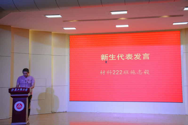 老生代表、学院团委学生兼职副书记、材控203班班长王昊哲同学以自身成长经历鼓励2022级新生:大学生活切勿好高骛远,牢记“一份耕耘就有一份收获”,要永远保持对待工作和学习的热情、对待知识最热切的追求。