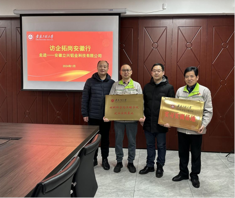 1月19日,学院一行走进芜湖市湾沚区安徽立兴铝业科技有限公司,与公司总经理朱健勇,行政副总兼党支部书记陶跃进洽谈人才培养和就业实训相关事宜。学院一行与企业签订了就业实践、实习实训协议,并举行授牌仪式。方玖胜、朱健勇共同为“必赢就业实践基地”揭牌;陶锋、陶跃进共同为“必赢实习实训基地”揭牌。